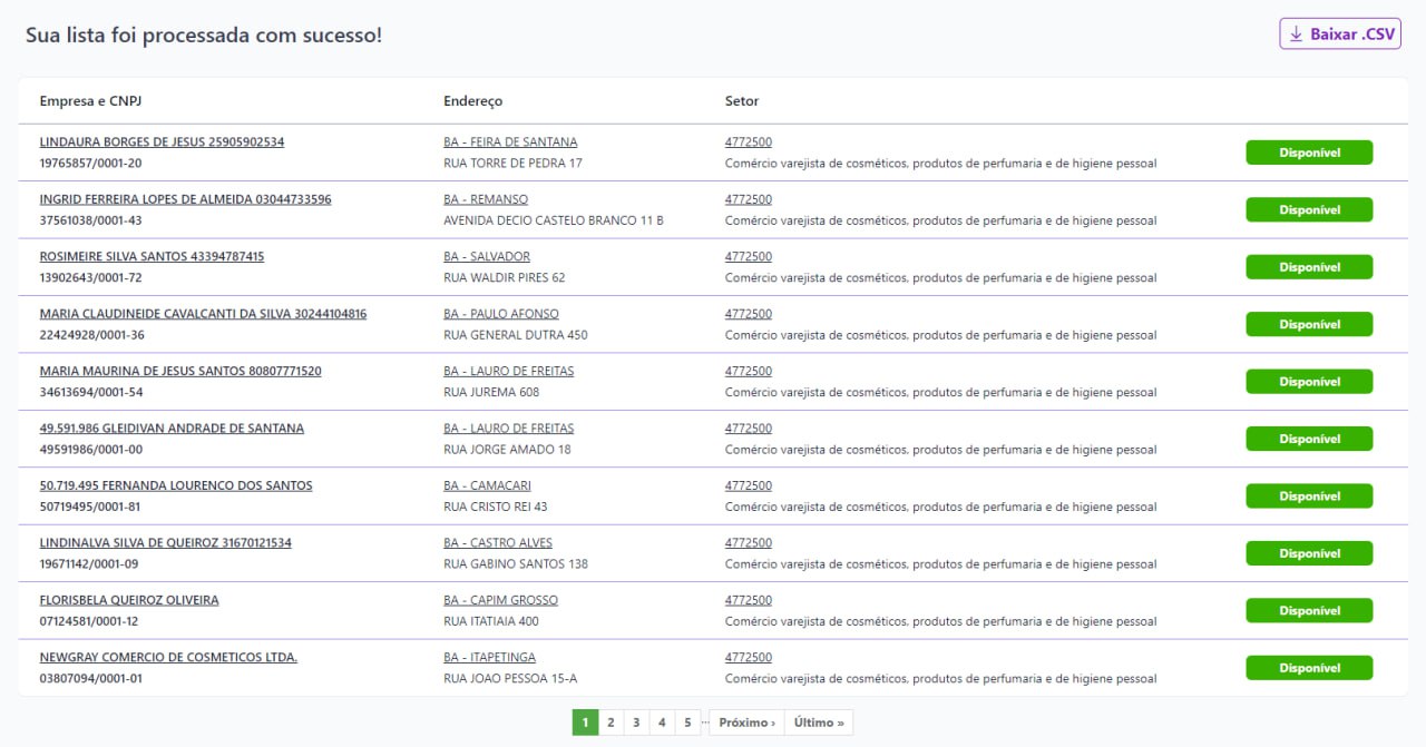 Após a confirmação de pagamento, sua lista começará a ser processada pelo sistema. Este processo pode levar algum tempo, especialmente para listas maiores, mas você será notificado assim que estiver disponível.