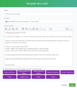 - Criação do Template: Acesse a seção de templates de e-mail no CRM People e comece a criar seu e-mail.